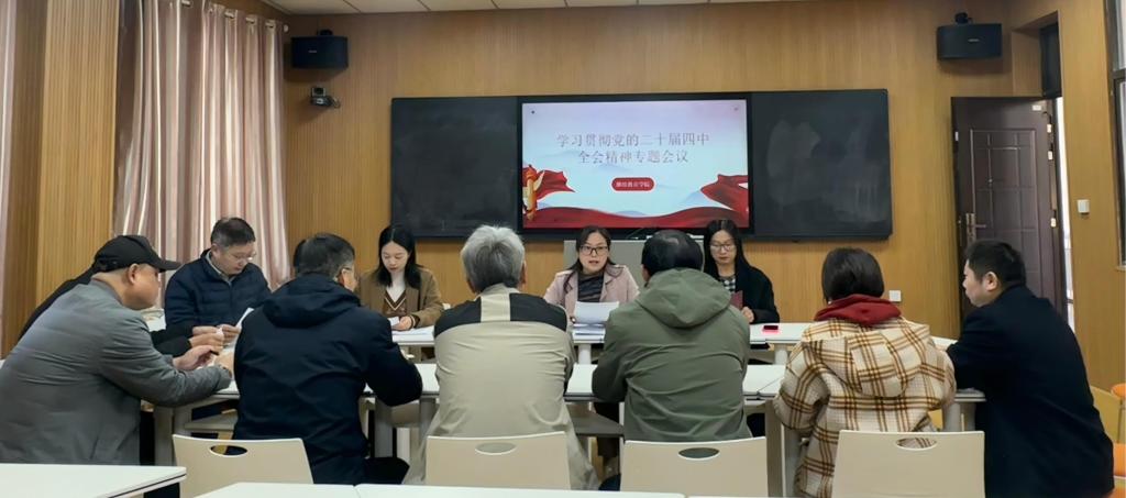 党总支副书记顾玲玲学习传达校党委《关于做好党的二十届四中全会精神学习宣传的通知》精神,宣读《kaiyun登录中国入口登录关于学习贯彻党的二十届四中全会精神的实施计划》。